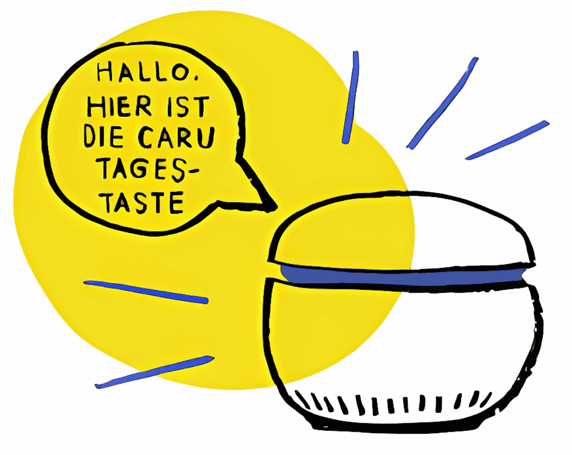 CARU erinnert Sie täglich auf sympathische Art und Weise per Sprach- und Lichtsignal an das Drücken der Tagestaste.